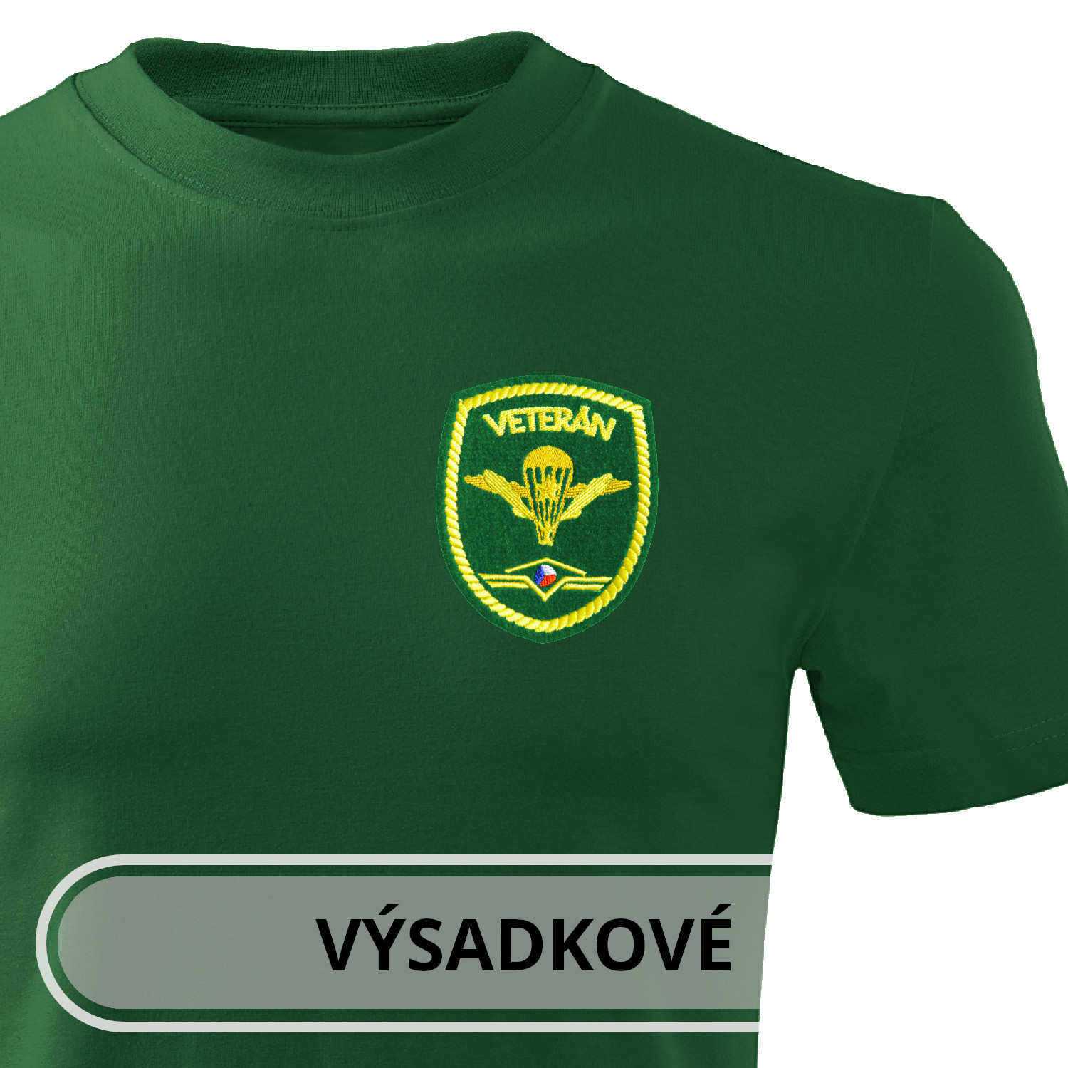 Fľaškovo zelené pánske/unisex tričko s vojskodruhovou nášivkou pre pamätníkov ČSĽA. Na stretávku, alebo len tak, pre spomienku ;-)