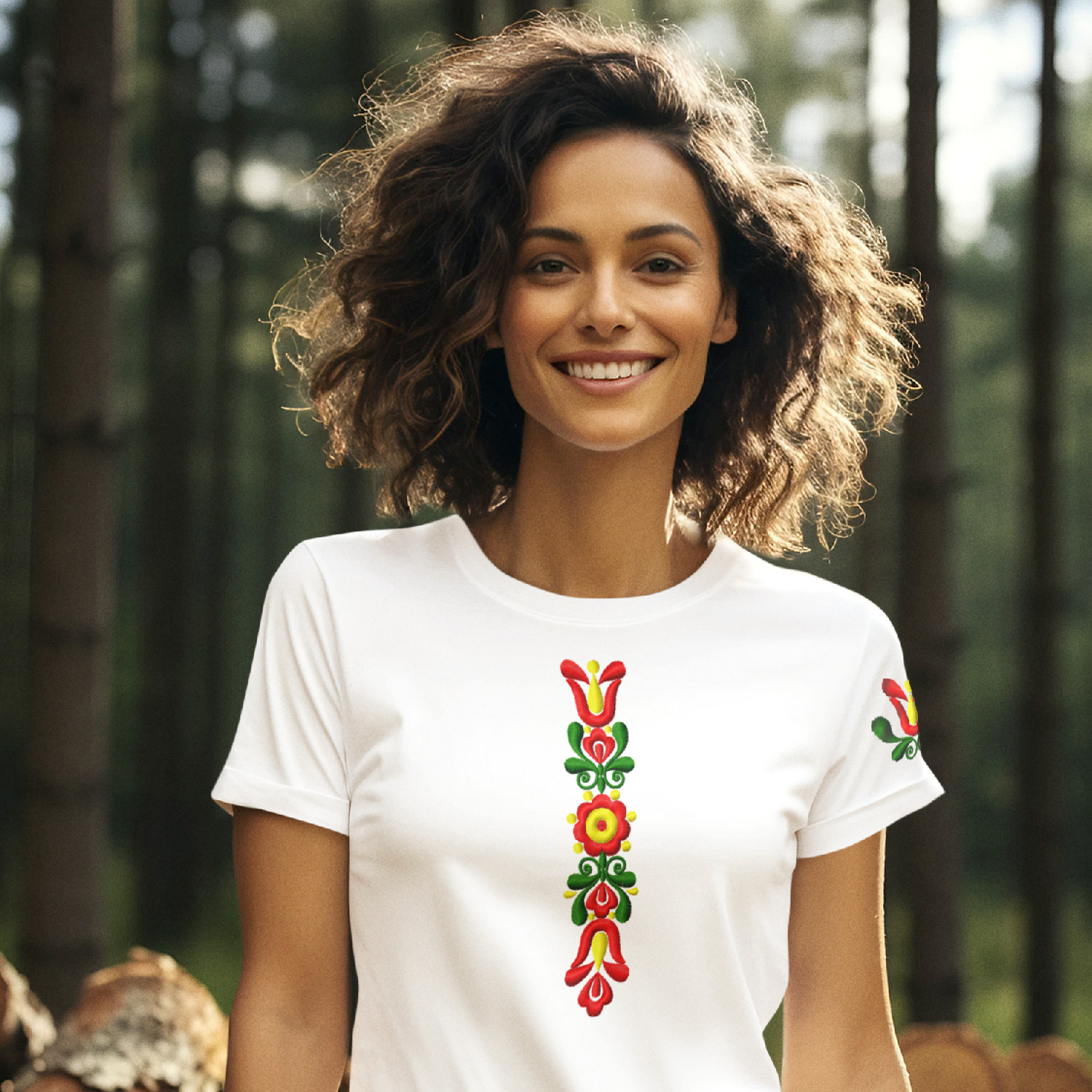 Pri tvorbe tohto dizajnu sme sa nechali inšpirovať prvkami a farbami pravej slovenskej ornamentiky, konkrétne výšivkou čepca, používanou v 19. storočí v Piešťanoch a okolí. Sviežo a jasne pôsobiaci trojfarebný motív na prednej časti trička a na ľavom rukáve v sebe spája slovenskú tradíciu a modernú eleganciu zároveň.