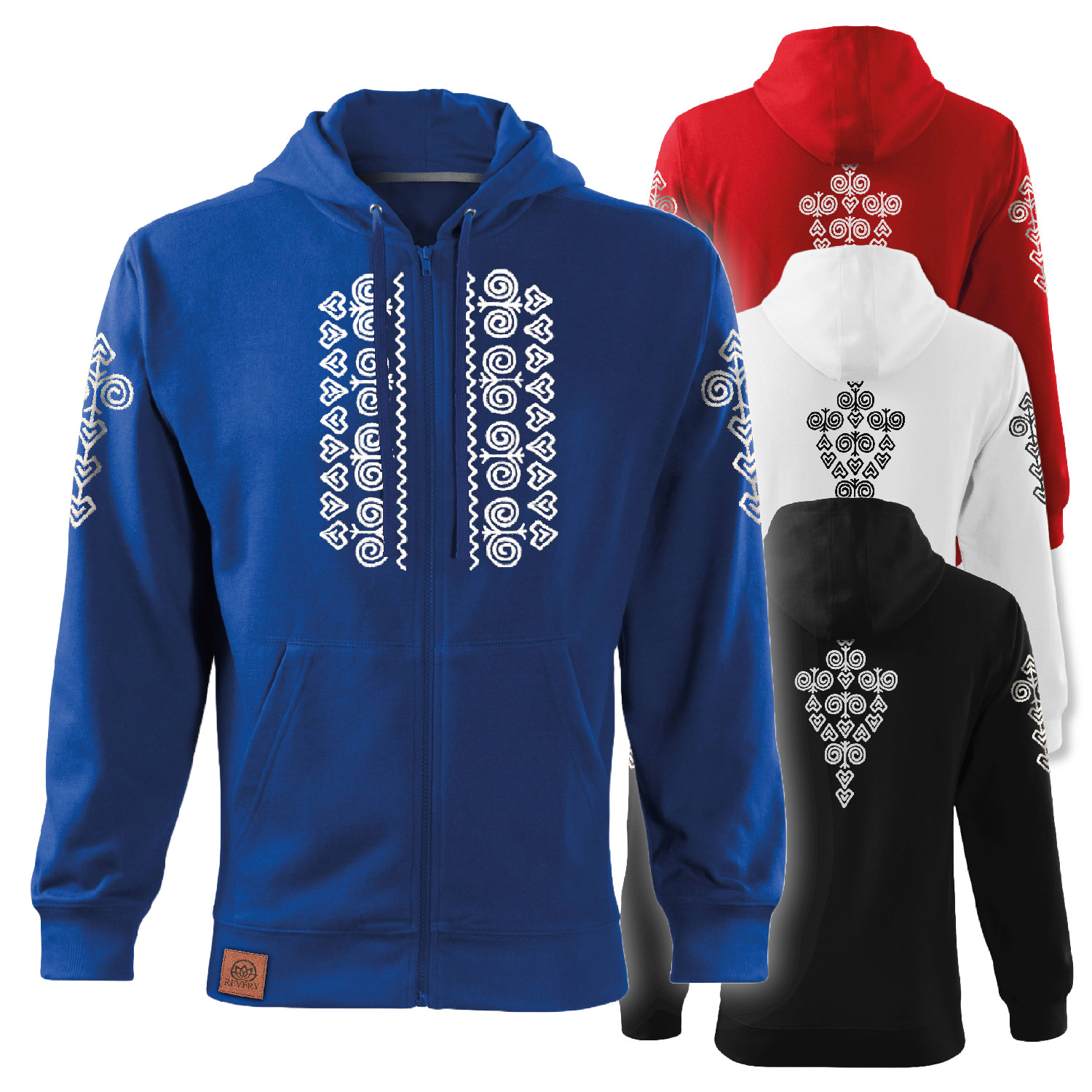 Bohato vyšívaná kvalitná mikina na zips, spájajúca v sebe tradičný slovenský dizajn, moderný strih a kvalitné materiály.